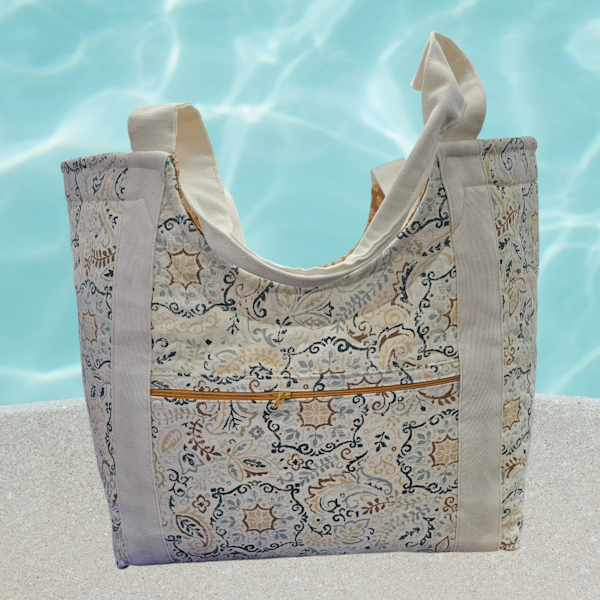 This spacious all-purpose tote is perfect for summer and features fun accents to showcase your favorite prints. Choose between an exterior zipper or slip pocket. Ideal for advanced beginners, as the project requires significant preparation. Machines will be provided.