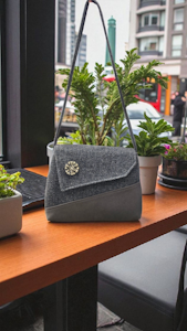 The simple clean lines of this design are reminiscent of the styles of the 1940's but with a modern asymmetrical twist. It is the perfect size to house all the essentials for a day at the office, or out and about in the town or country.